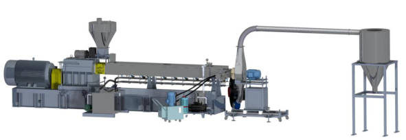 該系統(tǒng)通常包括模頭,切粒小車(chē),旋風(fēng)分離、振動(dòng)輸送等。
